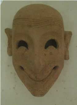 Trattasi di una maschera ritrovata nel tophet di Mozia e realizzata in terracotta rossa rappresentante un volto dai tratti sinistri e controversi che si risolvono in un sorriso che può definirsi «diabolico».