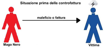 Il mago nero attacca magicamente la sua vittima con una fattura. Il percorso delle influenze nocive va dall’operatore alla vittima (Mago Nero -> Vittima - Vedi Figura).