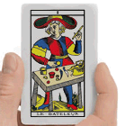 In particolare i Tarocchi qui presentati sono grandi quanto una Carta di Credito e realizzati nel medesimo materiale. Perciò possono essere facilmente trasportati in borsa, nel portafogli, in auto, ecc. in modo da riceverne sempre l’influenza benefica.