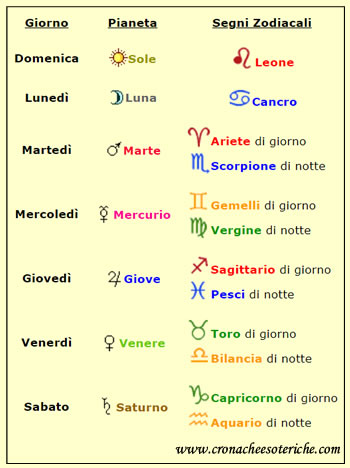 Nella tradizione esoterica ogni giorno della settimana è associato ad uno specifico Pianeta, così come ogni ora del giorno e della notte.