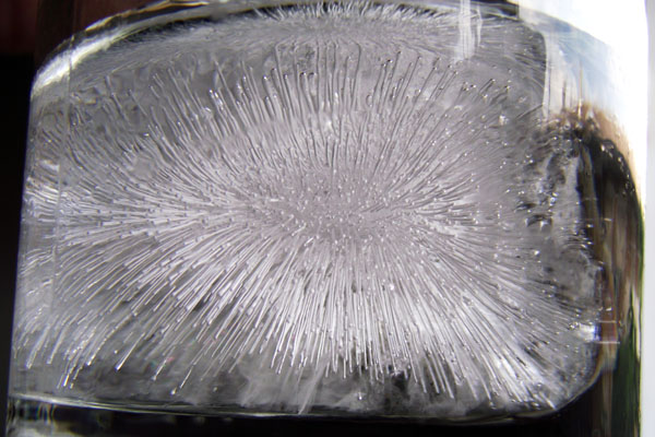 Sfruttando questa sensibilità del fluido in oggetto e la sua capacità di «memorizzare le esperienze» abbiamo pensato di eseguire degli esperimenti esponendo l’acqua alle vibrazioni di energia sottile emesse dalla nostra Orgonite. Purtroppo, allo stato attuale, non disponiamo di un microscopio per osservare i risultanti cristalli dell’acqua solida, tuttavia, come si vedrà nelle seguenti gallerie fotografiche, già ad un livello macroscopico è possibile osservare delle nette differenze tra l’acqua solidificata con esposizione alle vibrazioni orgoniche e quella «non esposta». In pratica è come se l’acqua fosse in grado di registrare ed immagazzinare l’«impronta dell’orgone» per poi manifestarla nella sua «struttura cristallina» ottenuta con il congelamento.
