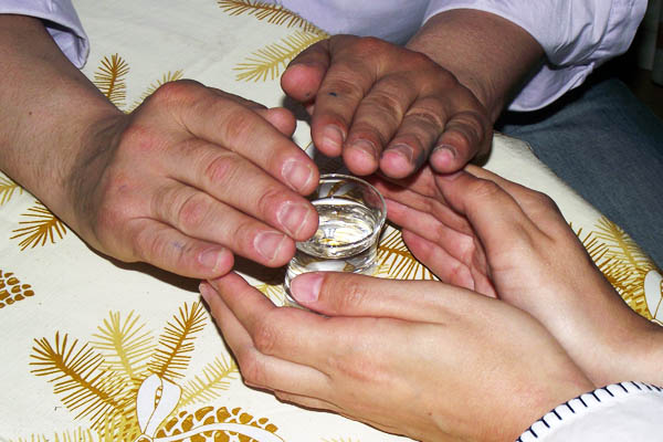 Commento all’Esperimento 4: Come si vede nelle foto i nostri due amici praticanti di Reiki utilizzano una tecnica analoga all’«imposizione delle mani» per canalizzare le energie terapeutiche conosciute con il temine «Reiki». Dalla solidificazione dell’acqua è evidenziata una struttura vorticosa che è una conseguenza dell’impronta energetica fornita dai nostri due operatori. L’acqua scongelata e ricongelata indica come l’Orgonite abbia aumentato l’effetto «vortice» impresso nell’acqua. In conformità a tale dato sperimentale riteniamo che l’Orgonite possa fungere da amplificatore nelle canalizzazioni di Ki nel Reiki come (presumibilmente) in altre discipline che prevedono l’utilizzo di energie sottili quali il Tai Chi, il Qi Gong, lo Yoga e le diverse forme di meditazione.